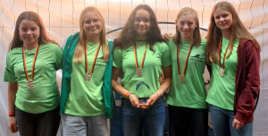 Die dritte Medaille für Norderstedt erkämpften sich Frieda Merettig, Manya Jami, Lene-Theresa Ertl, Greta Urban und Leonie Rathsack in der Altersklasse 15/16. Die Mannschaft, die von Hauke Stapel und Finnja Eder gecoacht wird, steigerte sich im Wettkampf von Disziplin zu Disziplin und sicherte sich in der stark besetzten Altersklasse mit drei neuen schleswig-holsteinischen Altersklassenrekorden das begehrte Edelmetall.