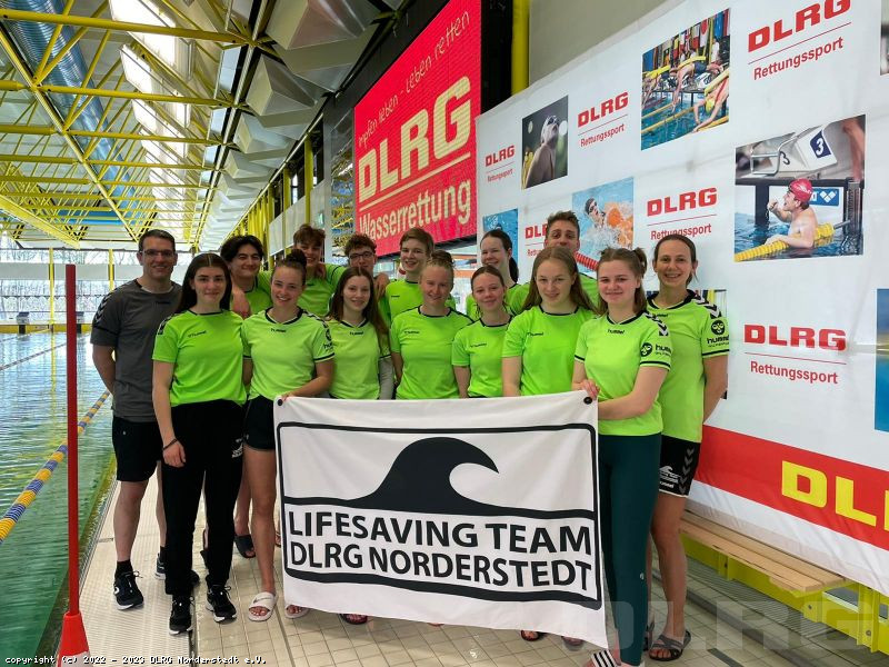 Eine kleine Auswahl von Norderstedter Rettungsschwimmern nahm im März 2022 nach den Vereinsmeisterschaften an den Deutschen Meisterschaften im Rettungsschwimmen teil