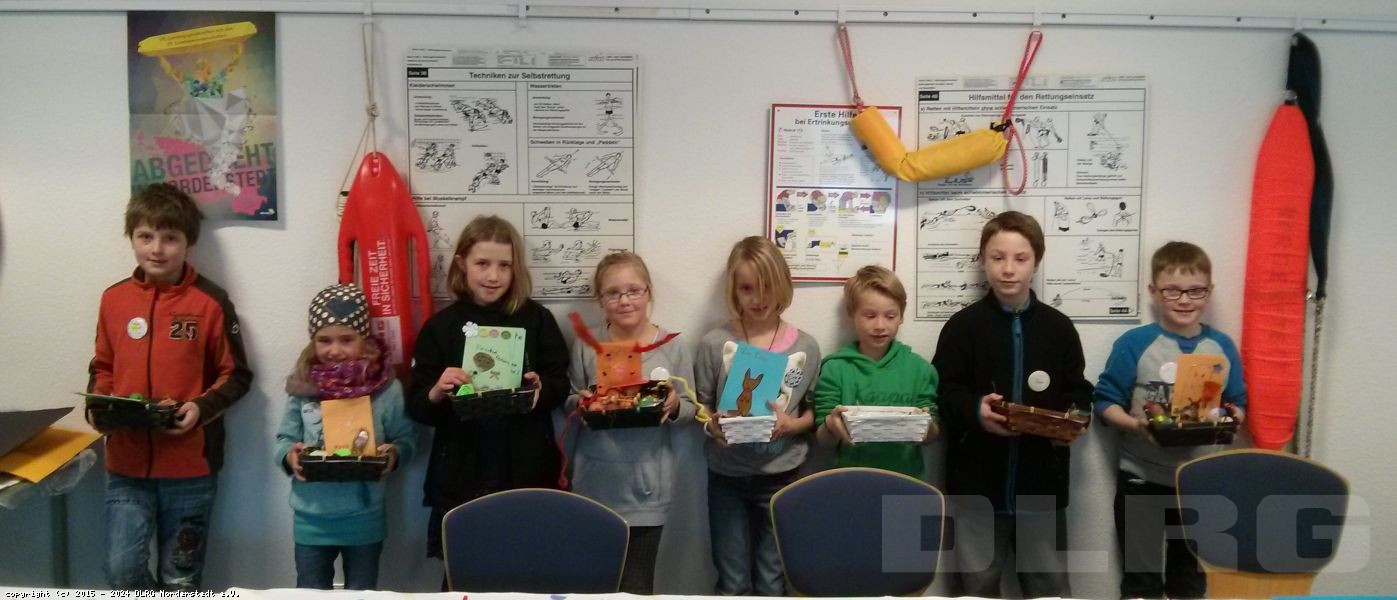Kindergruppenarbeit (KiGa) der DLRG-Jugend teilgenommen. Mit viel bunter Farbe und noch mehr Kreativität bemalten die Kinder Ostereier und bastelten aus schlichten Hühnereiern süße Hasen, liebe Wölfe oder coole Rennautos. Auch Grußkarten für Oma und Opa oder die Eltern wurden von den jungen Künstlern kreiert. Victoria Gärtner, Leiterin des Arbeitskreises KiGa, freut sich über den Erfolg der Veranstaltung: „Die heutige Osterwerkstatt hat nicht nur den Kleinen, sondern auch mir sehr viel Spaß gemacht. Es ist schön, dass wir den Kindern auch abseits vom Schwimmunterricht so viel bieten können.“ Sowohl die Schwimmausbildung als auch Veranstaltungen wie die Osterwerkstatt werden von ehrenamtlichen Betreuern der DLRG Norderstedt durchgeführt. Durch das Engagement der Ehrenamtlichen und den künstlerischen Einsatz der Kinder hat der Osterhase nun einiges zum Verstecken – Ostern kann also kommen.