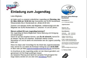 wir laden euch zu unserem ordentlichen Jugendtag am Dienstag, den 03. März 2026 um 18:00 Uhr ins Vereinsheim der DLRG Norderstedt, Wiesenstraße 50a in Norderstedt ein.